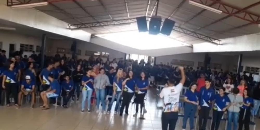"As hetero, as gays, as bi, as trans, e as sapatão, tão todas organizadas pra fazer revolução", canta palestrante em Escola Estadual de Juína (MT)