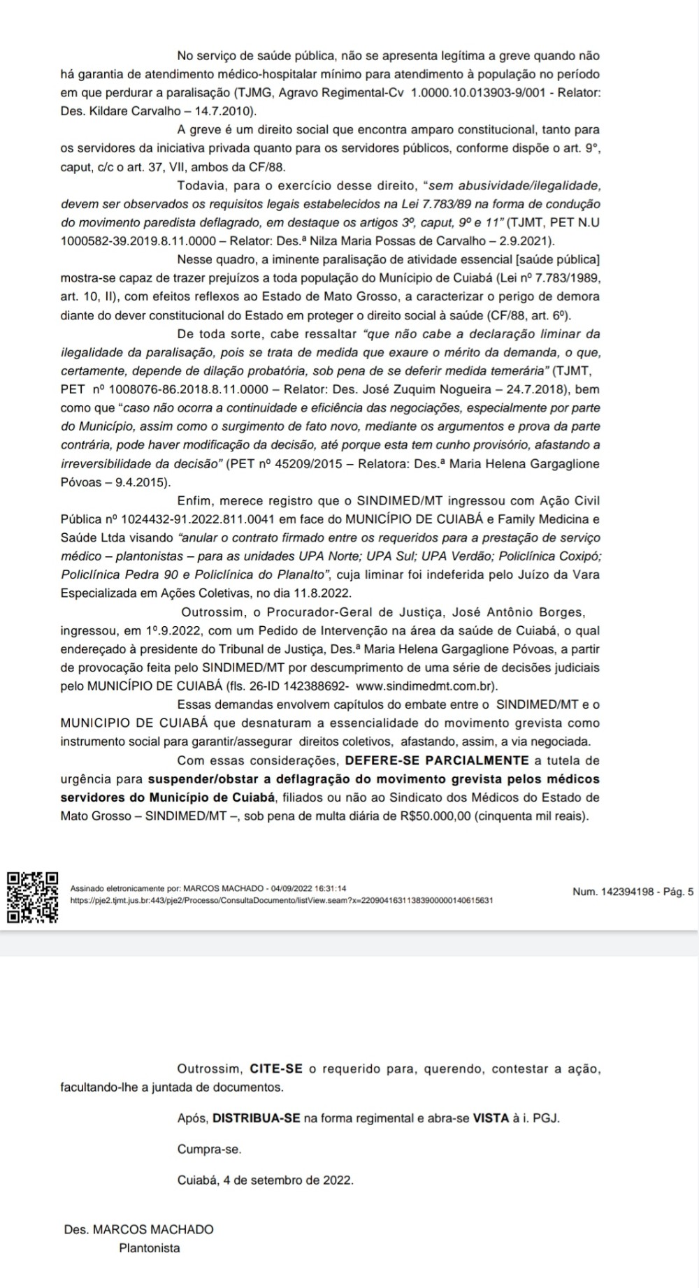Em sua decisão, o magistrado ainda aplicou multa diária de R$ 50 mil em caso de não cumprimento por parte do Sindmed.
