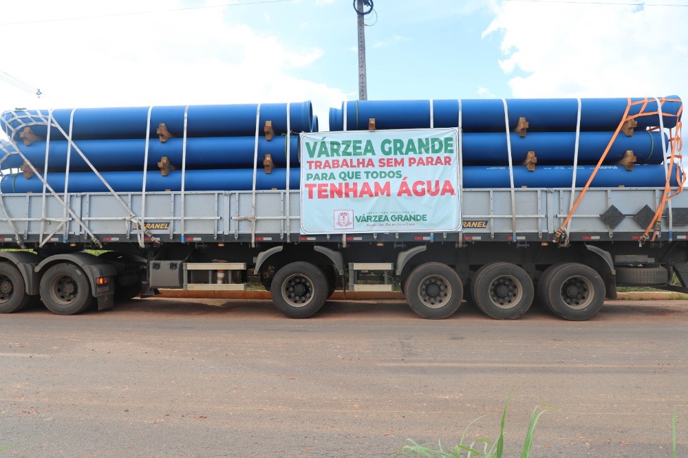 Outras 10 carretas de tubulações chegam nos próximos dias totalizando 4,5 km de adutoras. Os equipamentos representam R$ 5 milhões de investimentos realizados com recursos próprios da Prefeitura de Várzea Grande oriundo de financiamento aprovado pela Câmara de Vereadores.