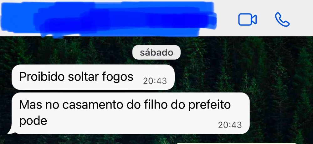 Com a intensa comemoração com fogos, algumas pessoas questionaram o fato nas redes sociais. "Proibido soltar fogos, mas no casamento do filho do prefeito pode".