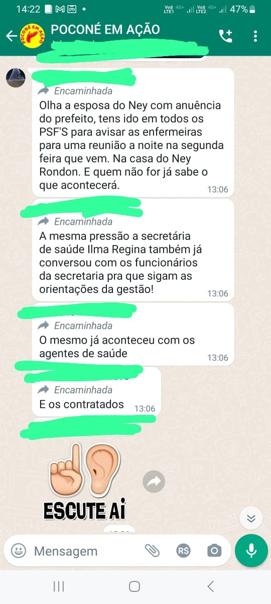 A fonte nos questionou ainda, sobre a falta de fiscalização por parte do Ministério Público Eleitoral (MPE), para que possa impedir essa opressão política, causando assim preocupação e insegurança por parte dos servidores.