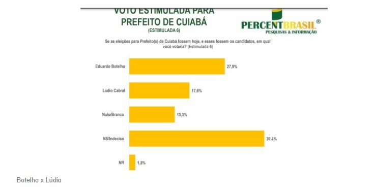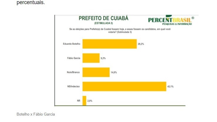 Já na disputa com o deputado federal, Fábio Garcia, atual secretário-chefe da Casa Civil, Botelho liquida a fatura com 29,2% contra 9,2% do seu opoente, frente elástica de 20 pontos percentuais.