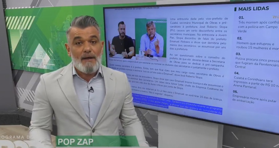 Após mostrar as imagens, o apresentador enviou um recado para o vice-prefeito de Cuiabá, José Stopa (PV), que também é secretário de Obras e Infraestrutura do município.